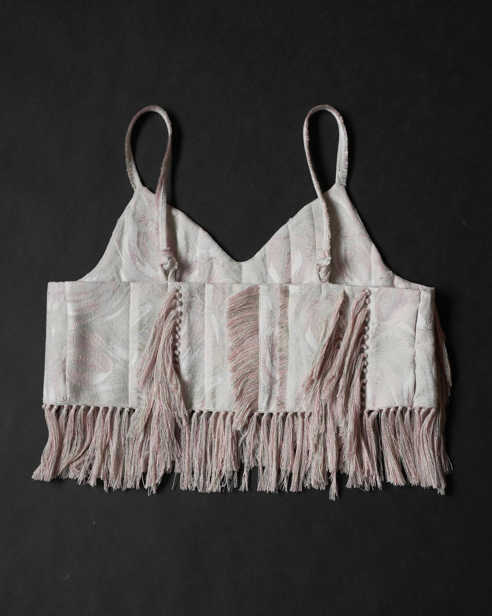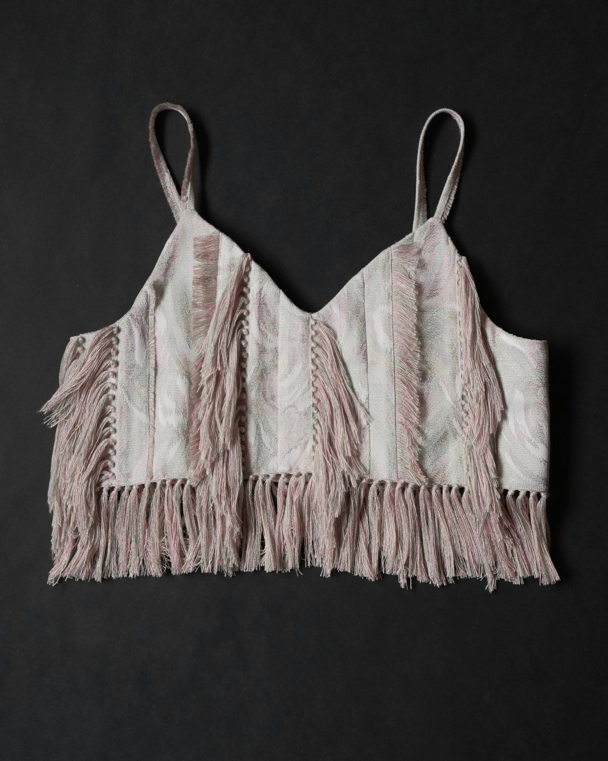 もともとインテリアカーテンに使用される予定だった生地を譲り受け、新たにキャミソールとして仕立てた一点ものです。