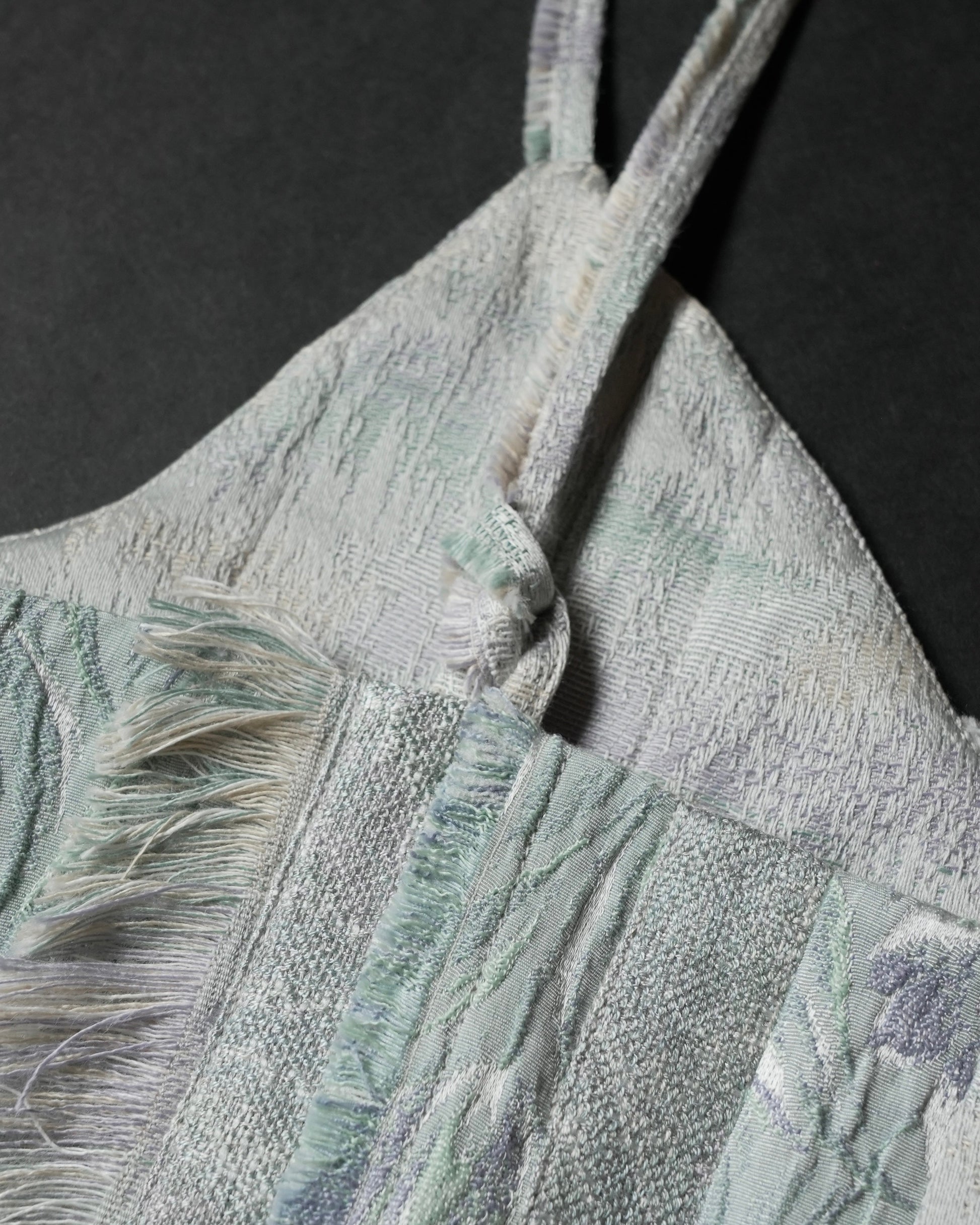 もともとインテリアカーテンに使用される予定だった生地を譲り受け、新たにキャミソールとして仕立てた一点ものです。