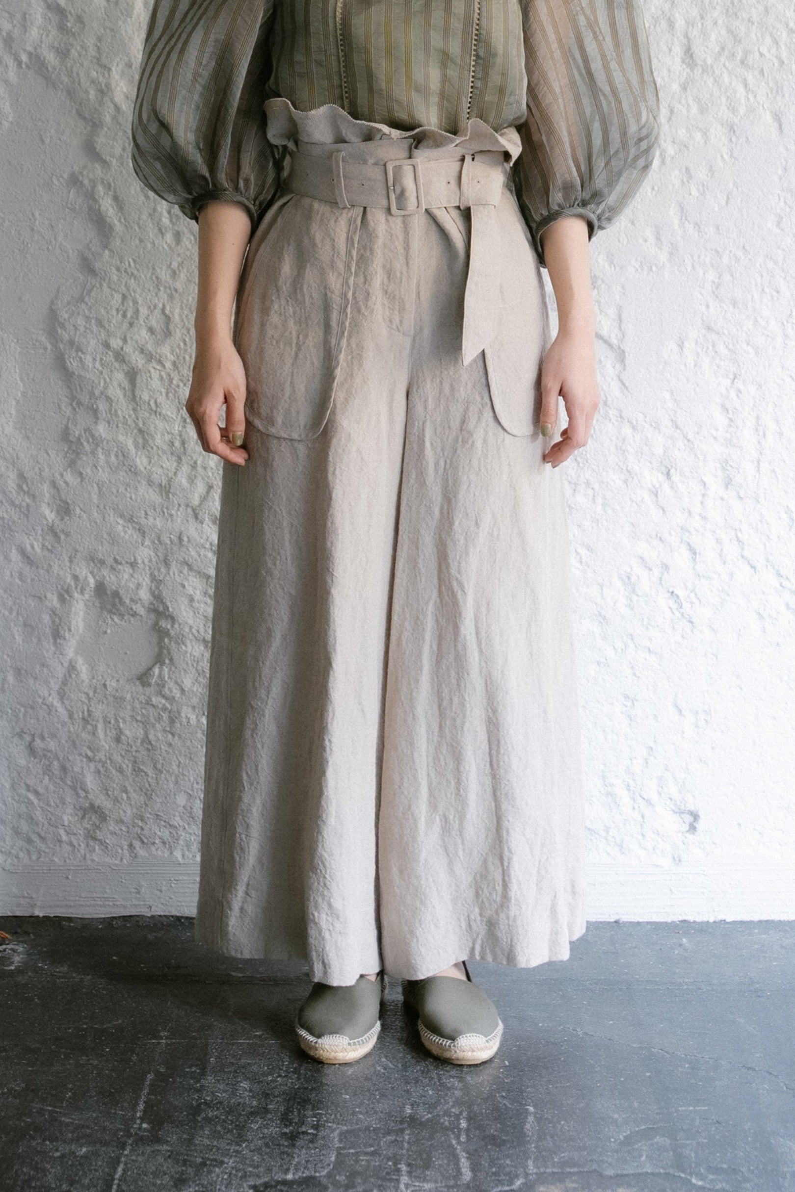 洗碗布亞麻褲(米色)