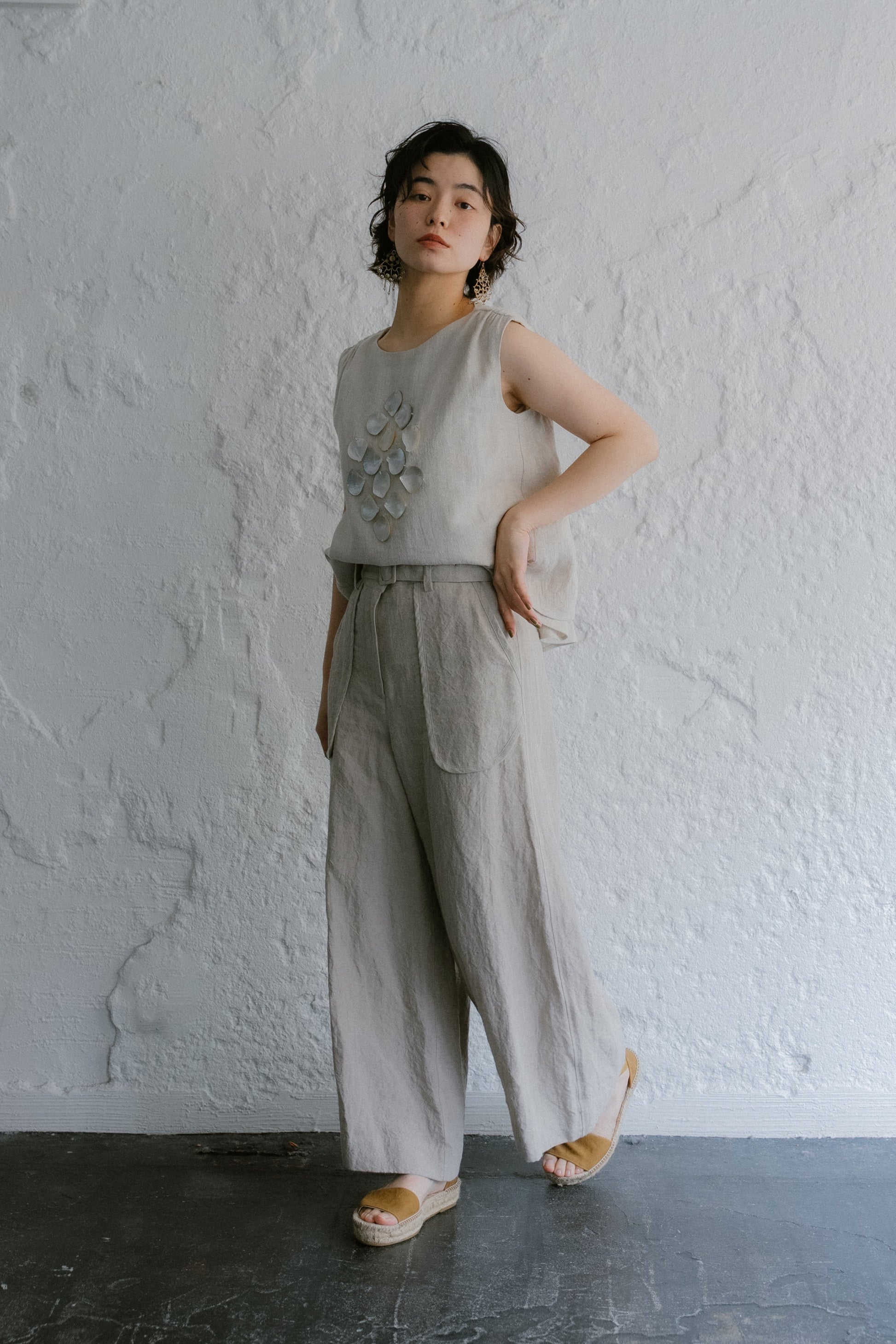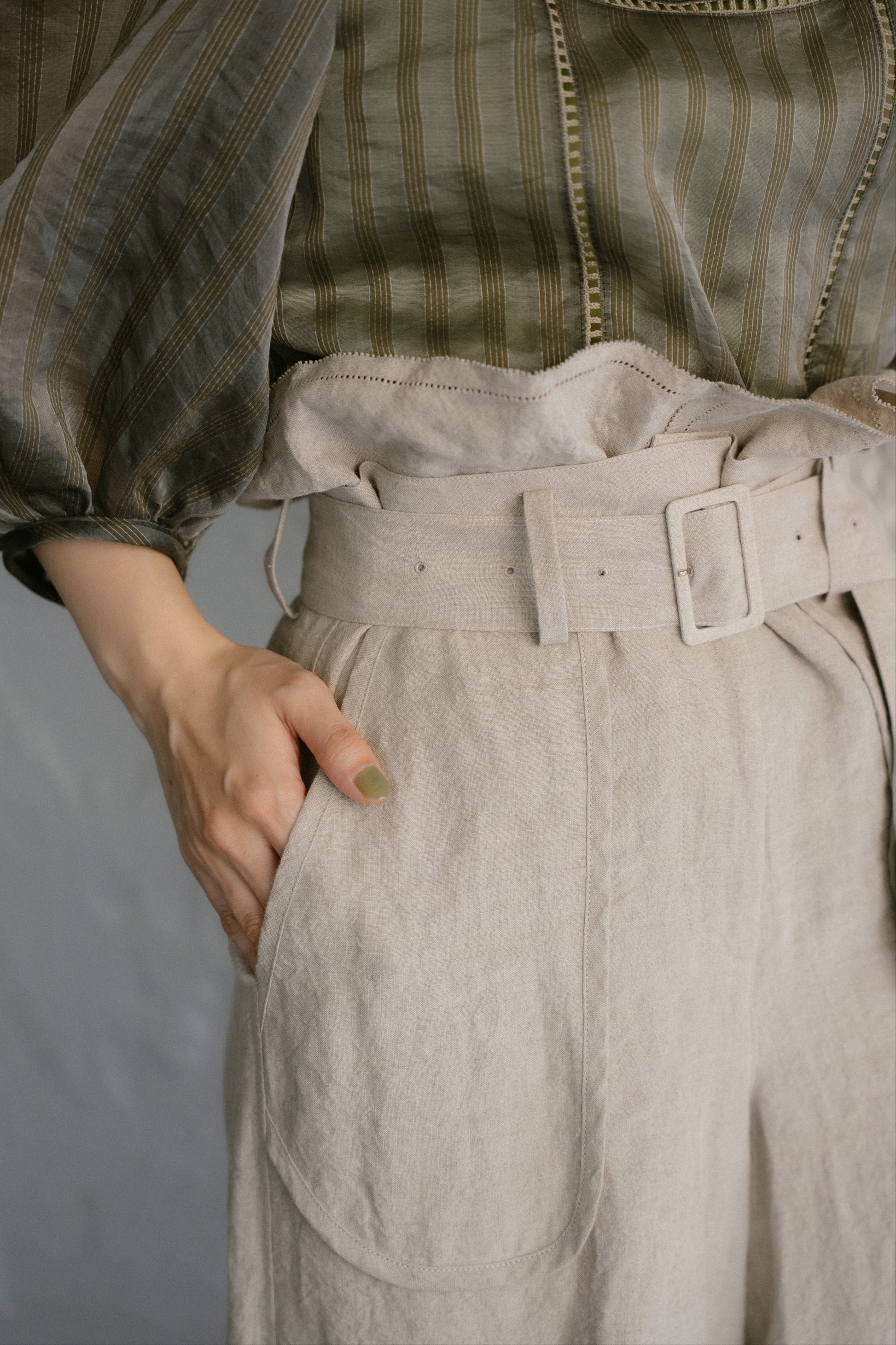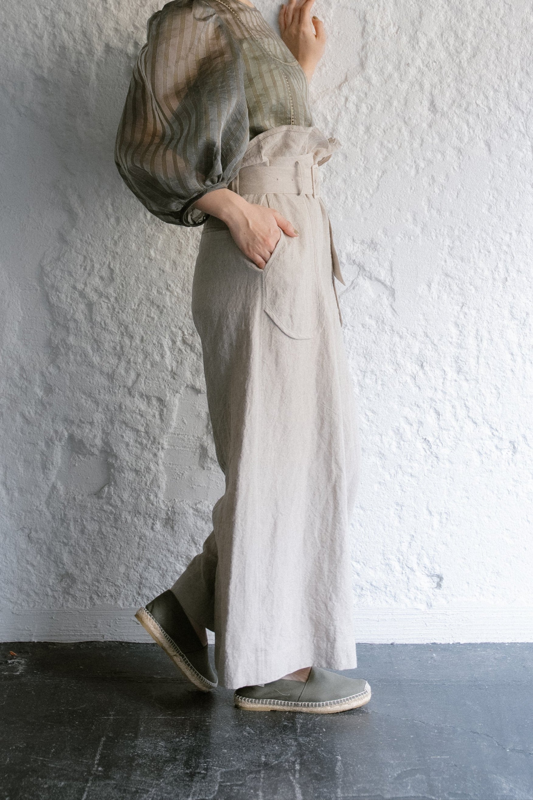 這條褲子採用亞麻製成,具有自然、水洗的感覺,穿著涼爽舒適。