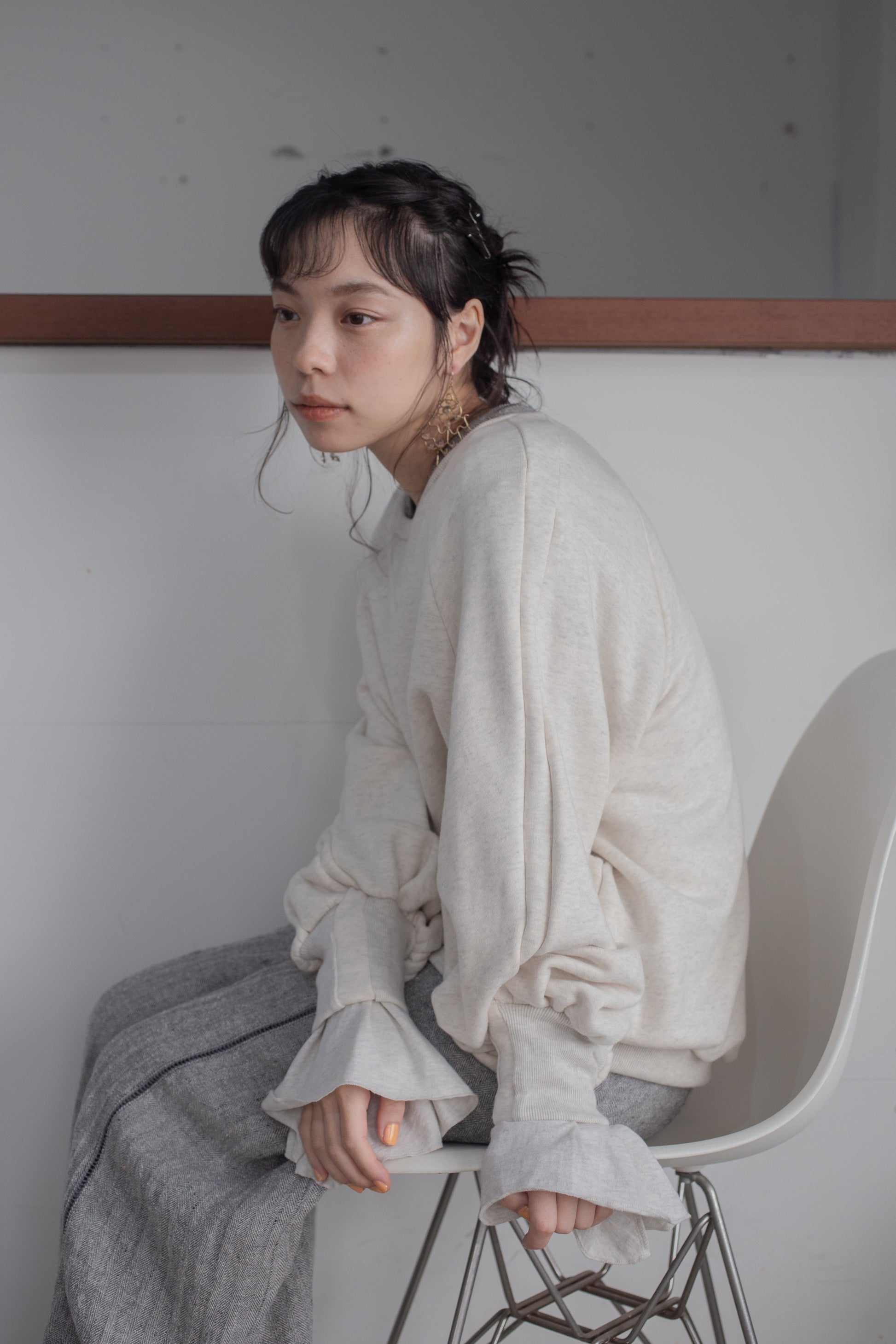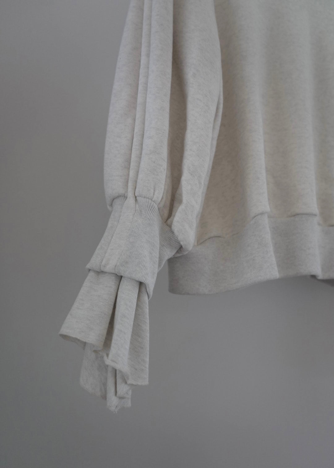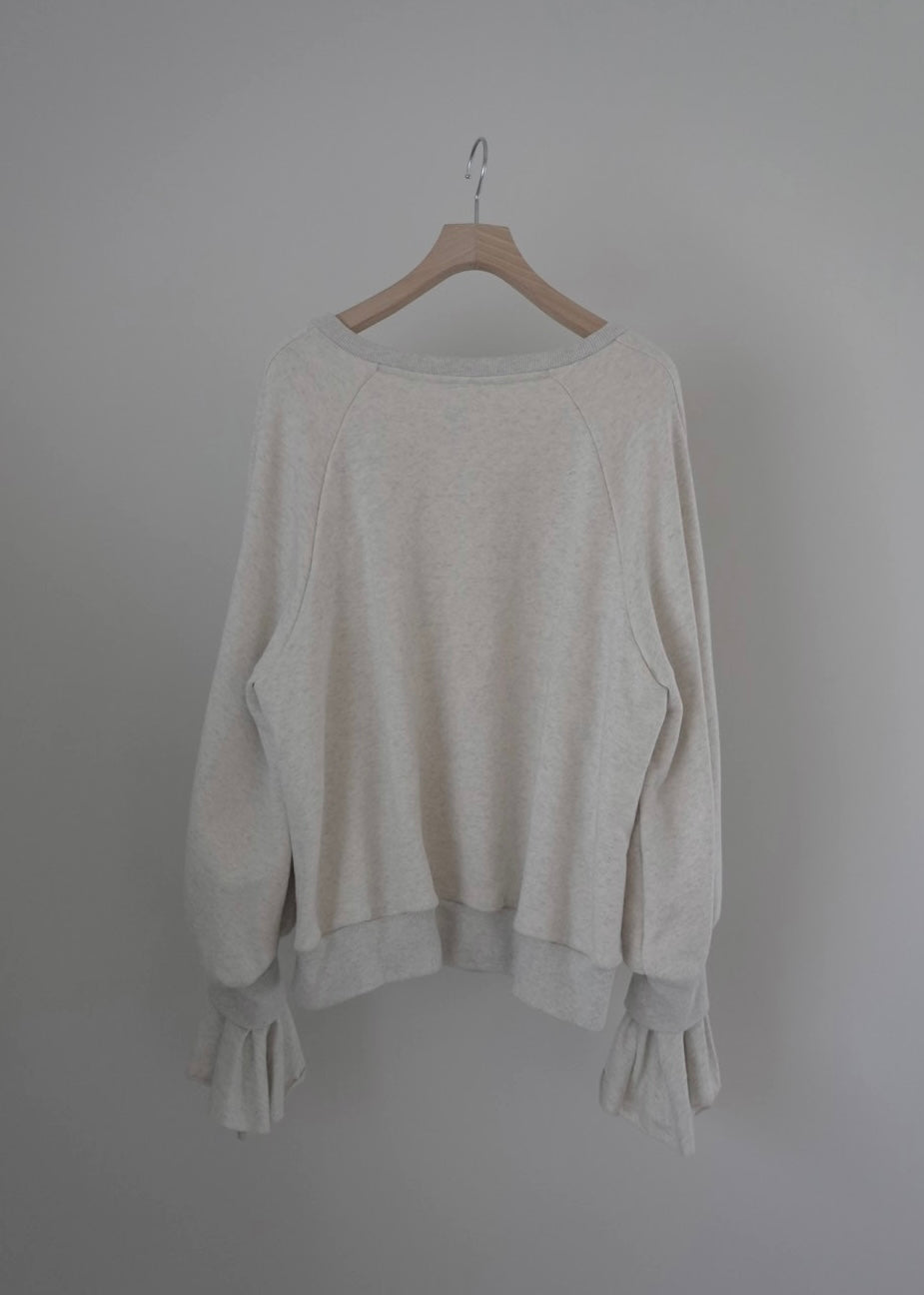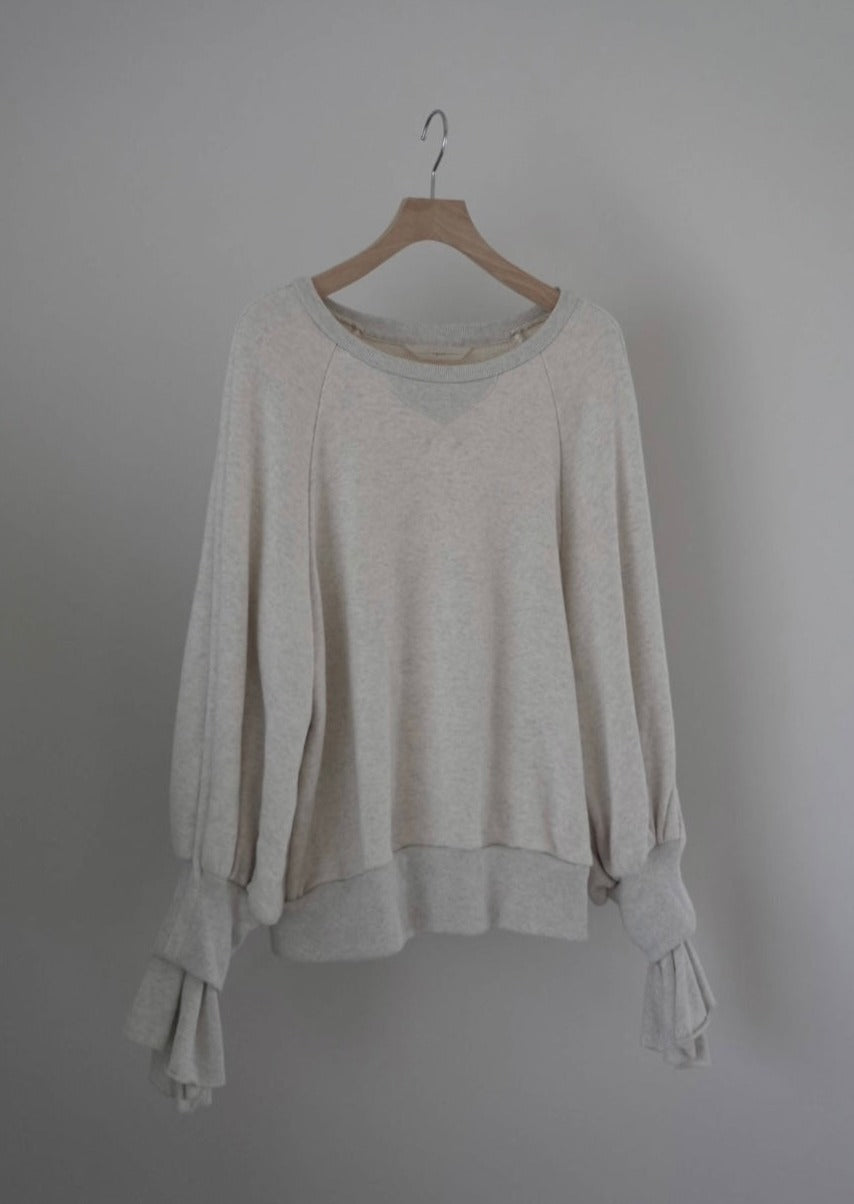 這件套頭衫採用基本的羊毛材質製成,袖子處有醒目的褶邊。