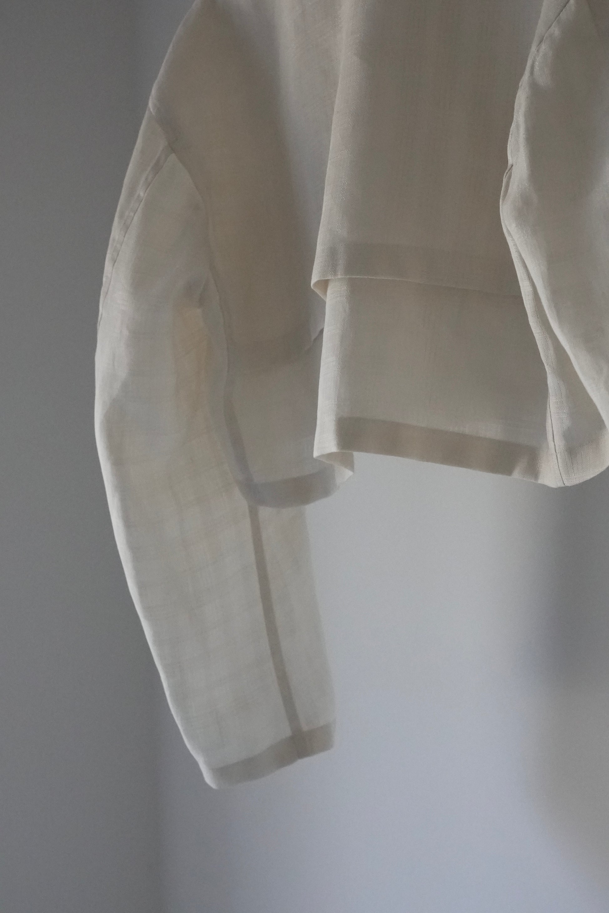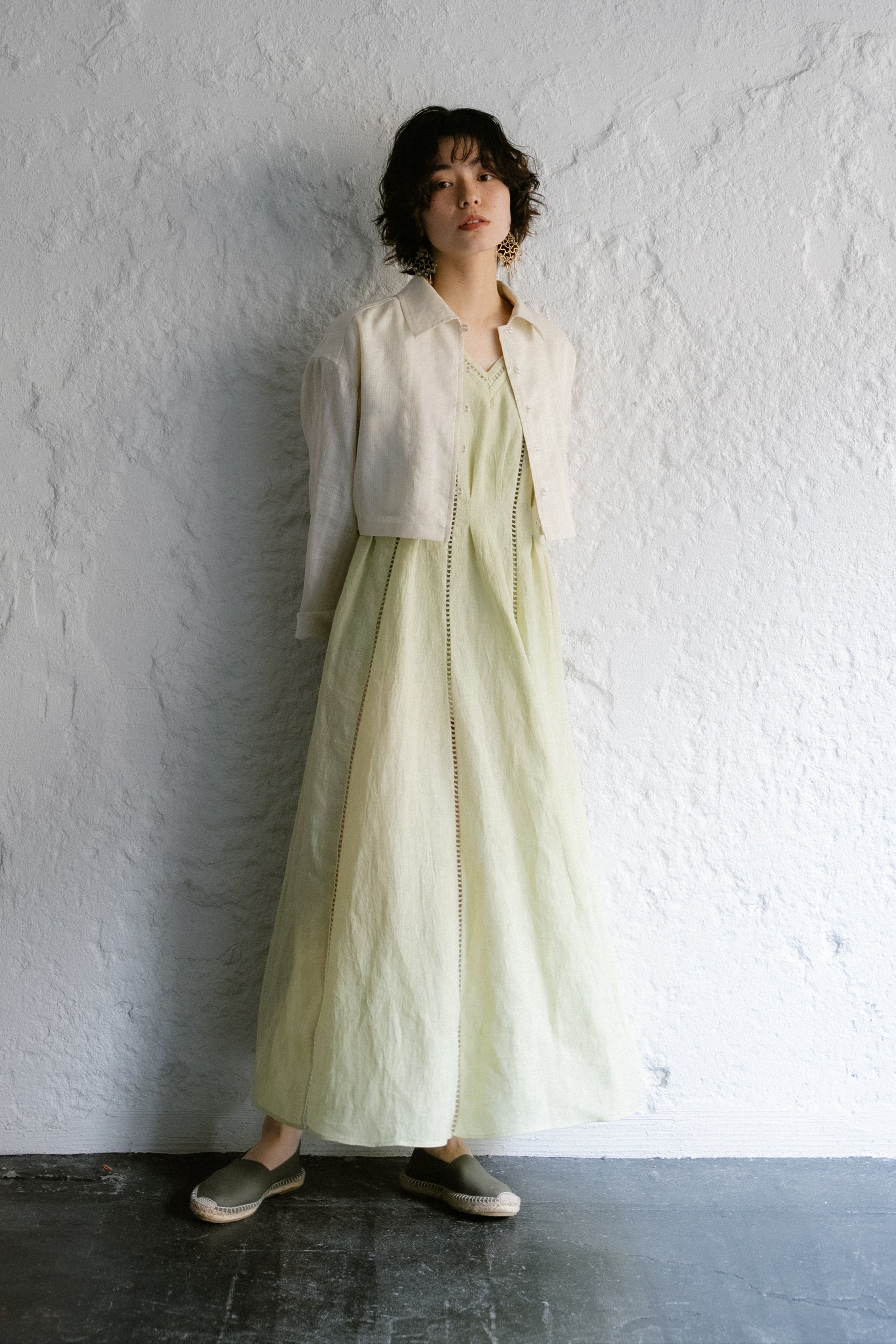 設計師宮園委託京都玻璃藝術家精心打造這些紐扣,每一枚均為手工製作。它們清新迷人的外觀,如同輕輕地塑造著無法保持形狀的水面。