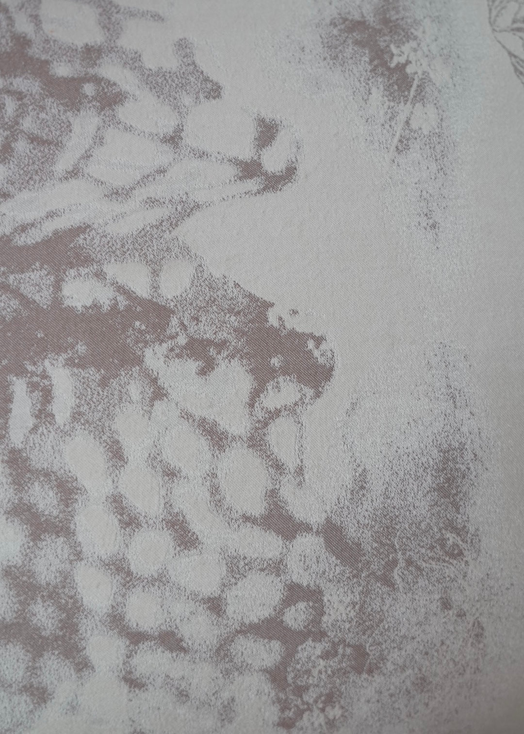 提花織物採用三種不同顏色的棉線編織而成,透過改變顏色和線數,表面呈現編織圖案獨有的深度。