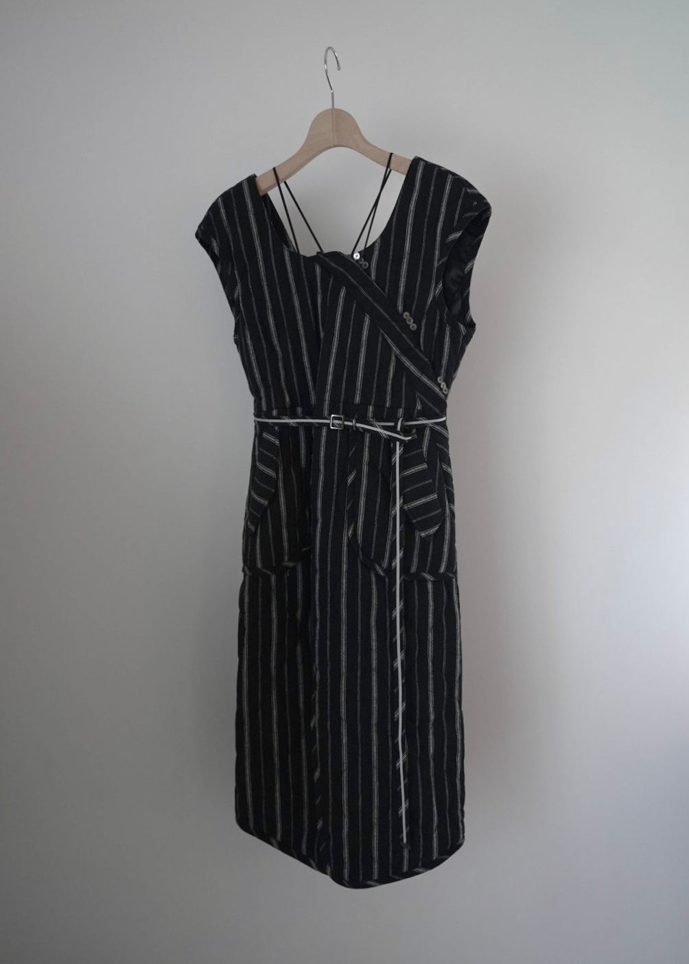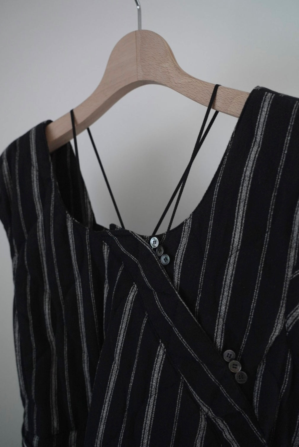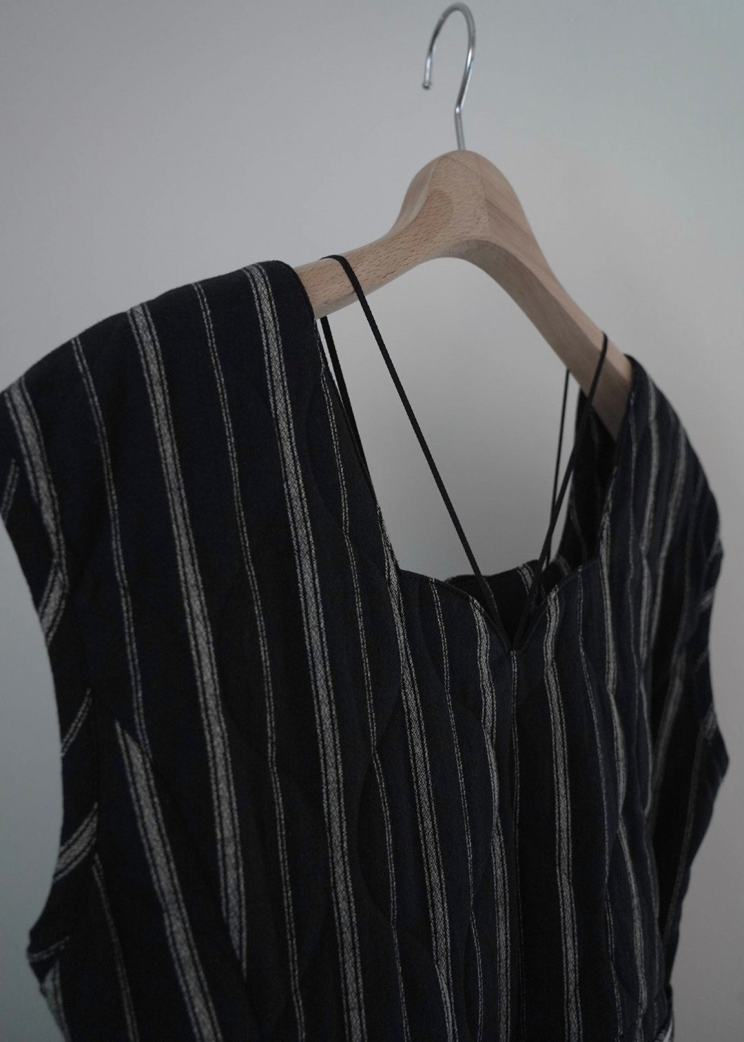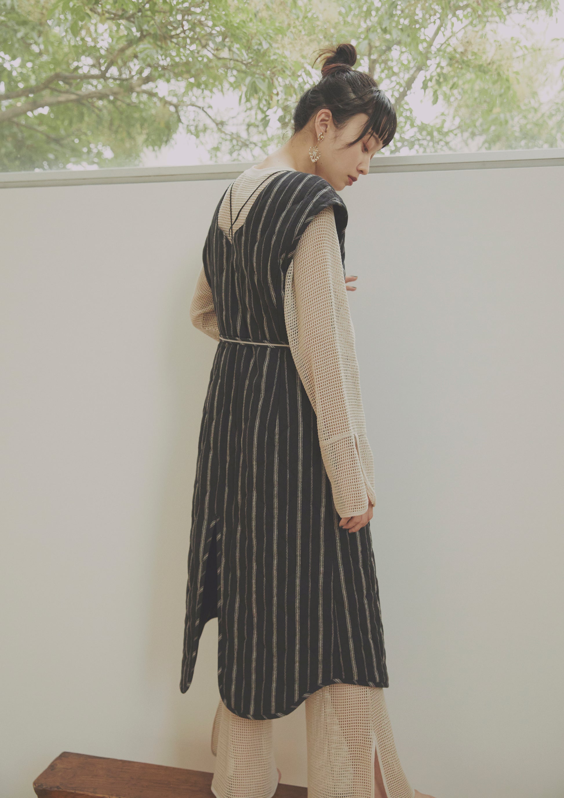這款套頭裙採用條紋棉麻布料製成,經過絎縫處理,外觀柔軟。