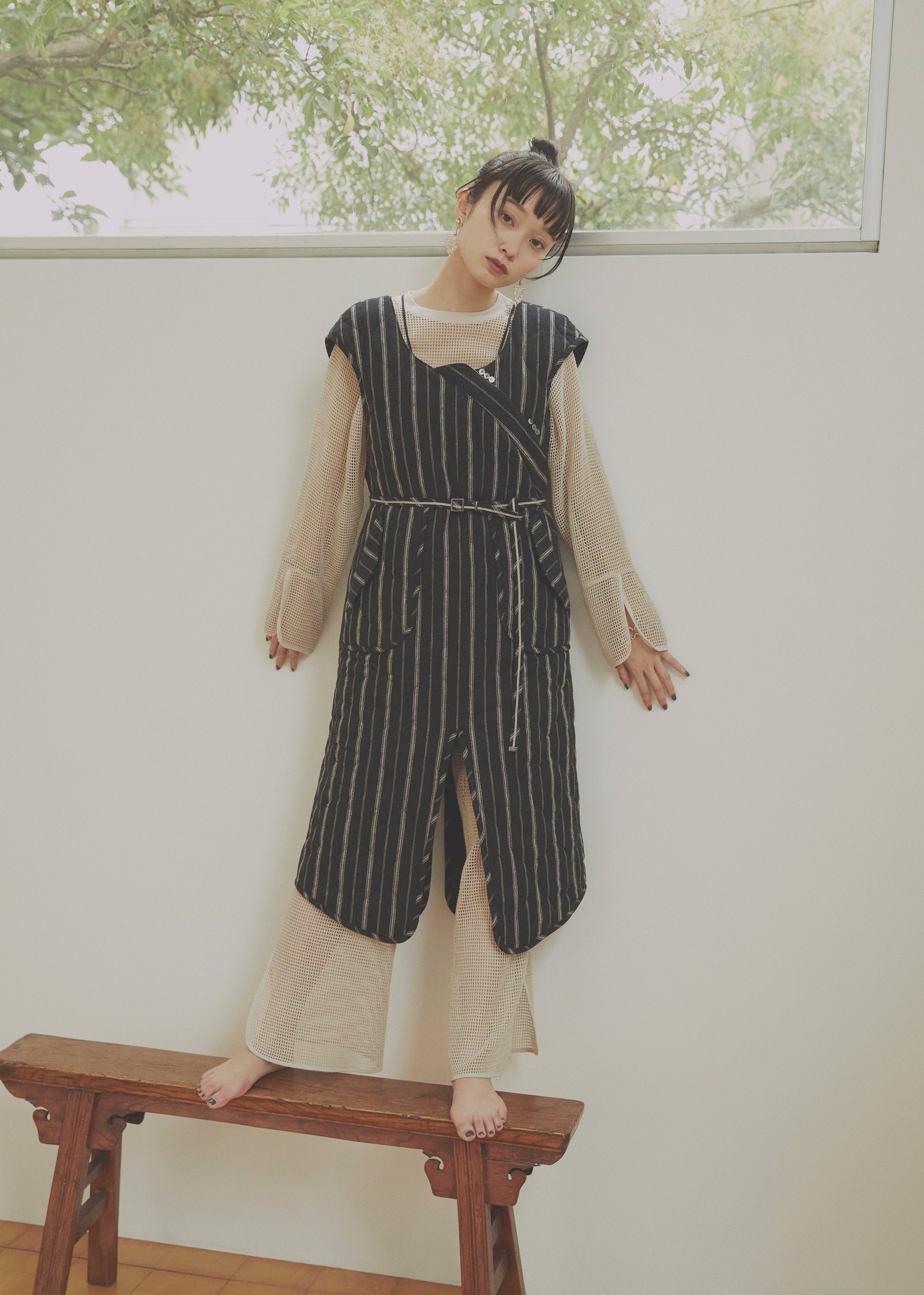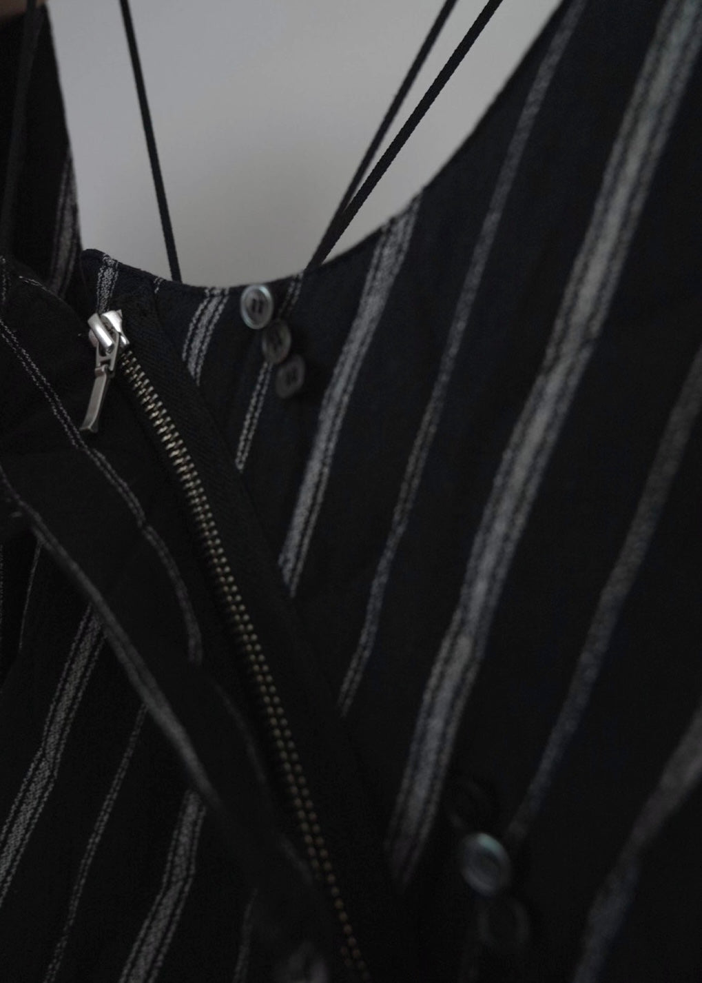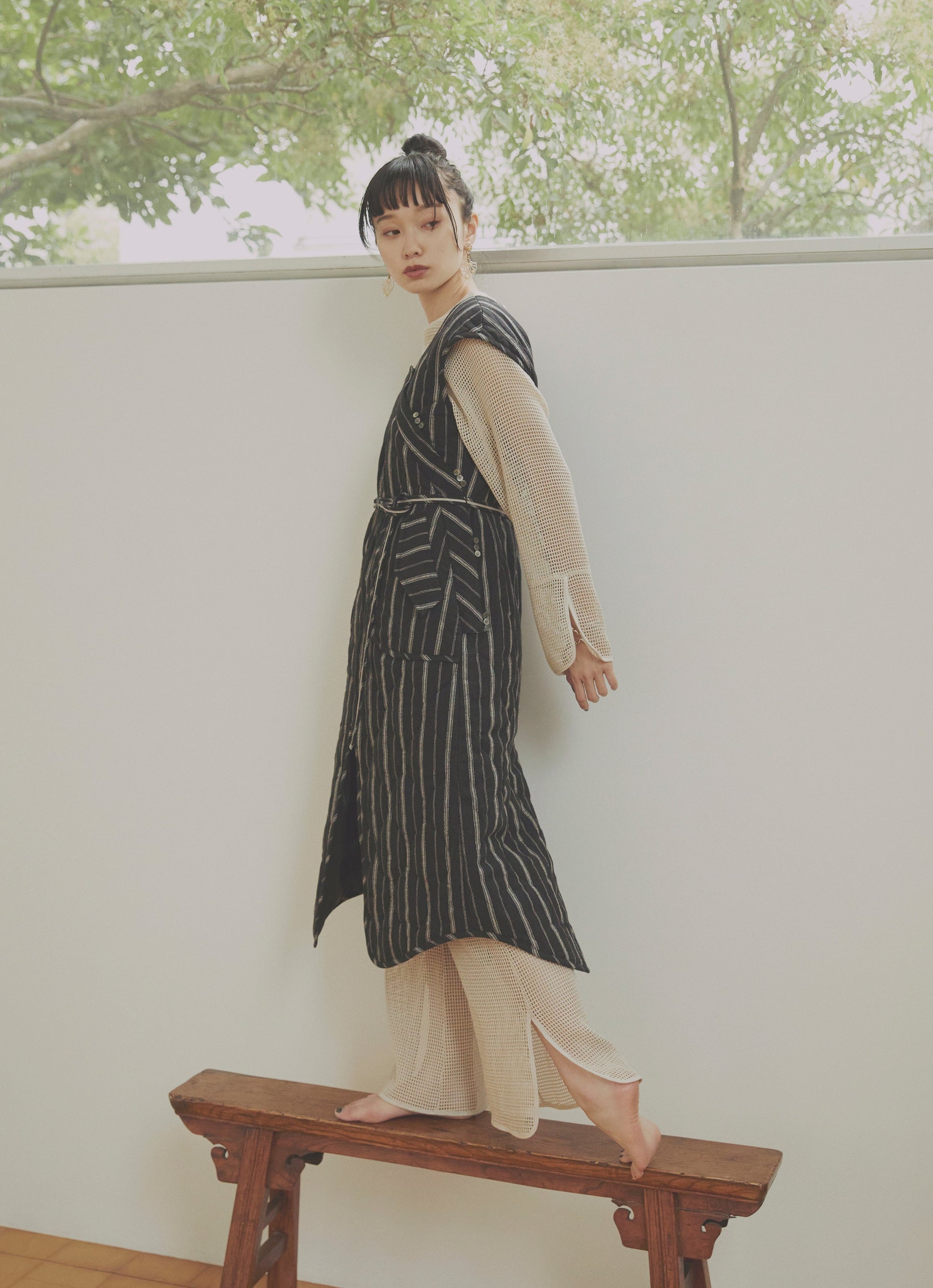 這款套頭裙採用條紋棉麻布料製成,經過絎縫處理,外觀柔軟。