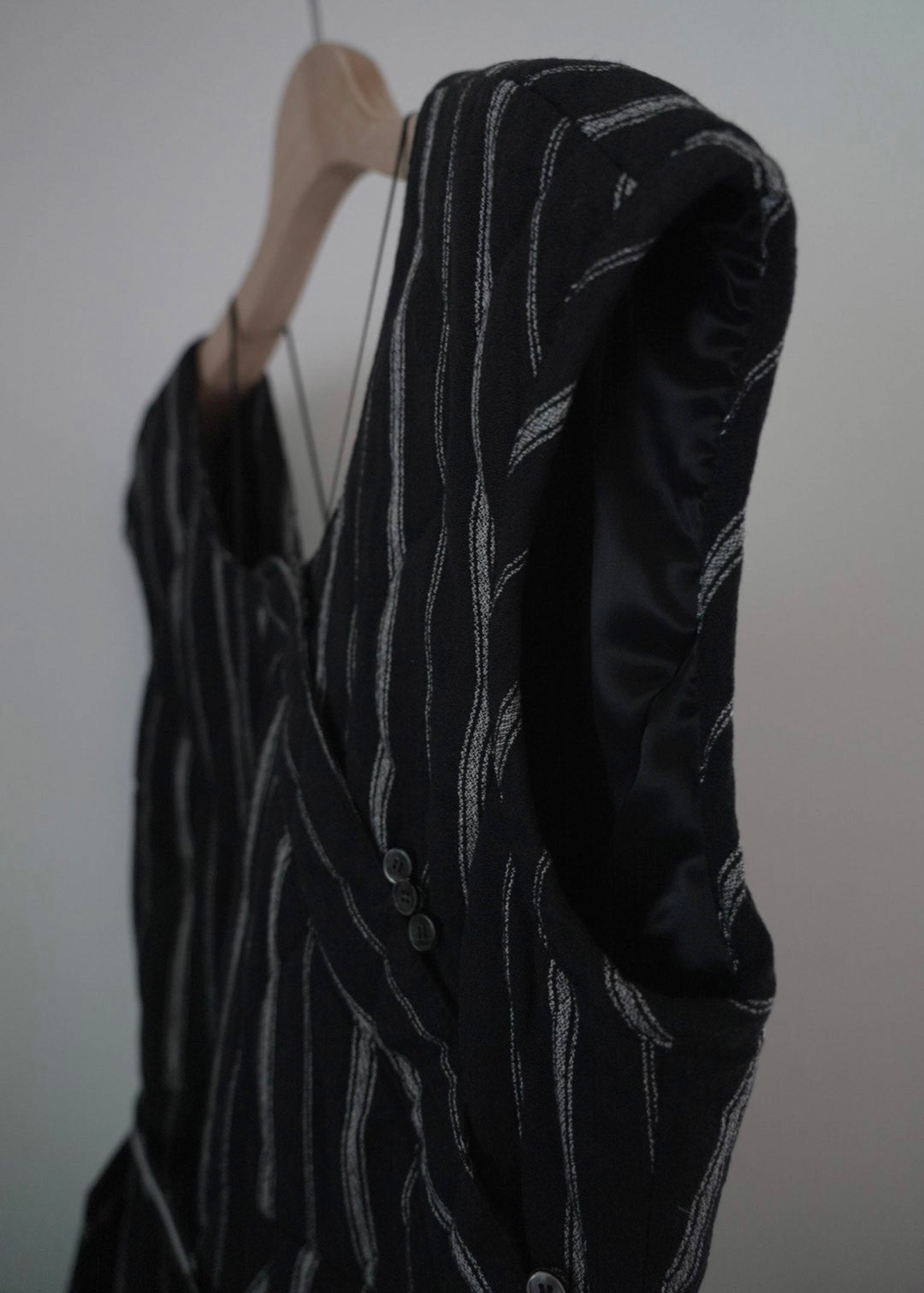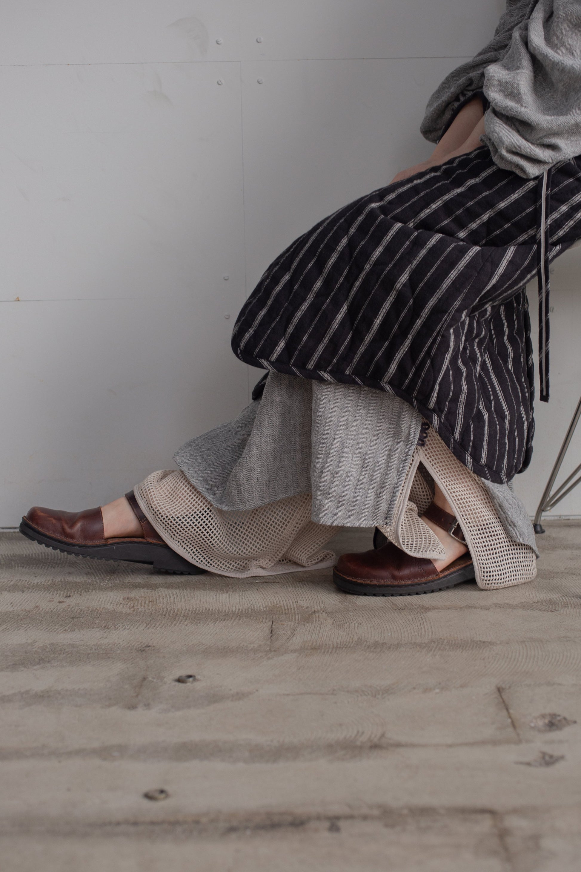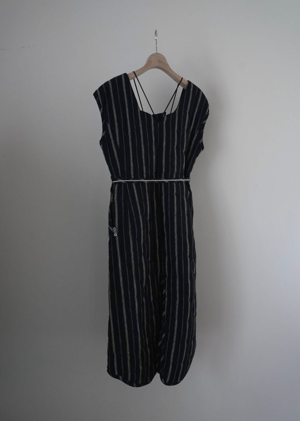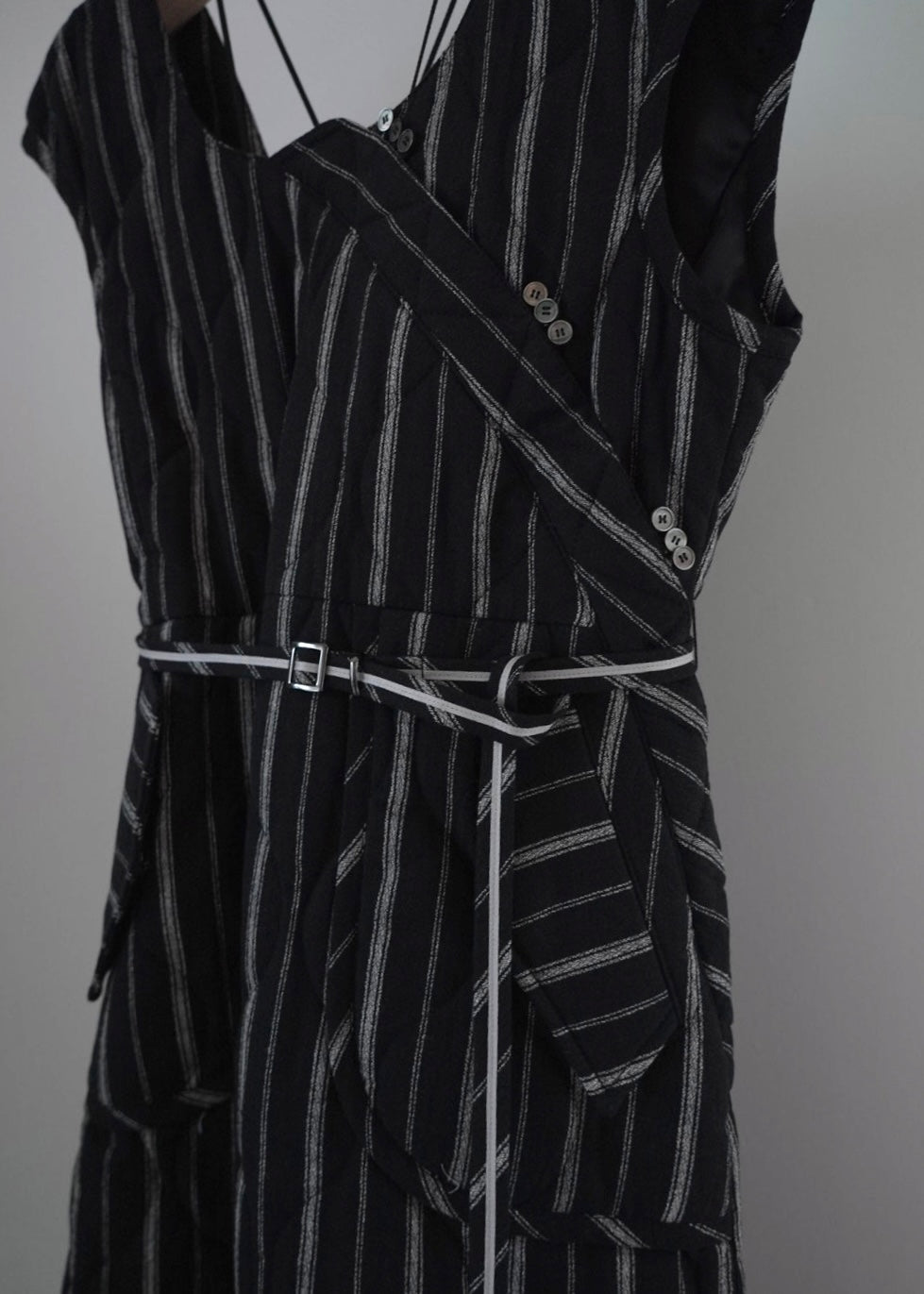 這款套頭裙採用條紋棉麻布料製成,經過絎縫處理,外觀柔軟。