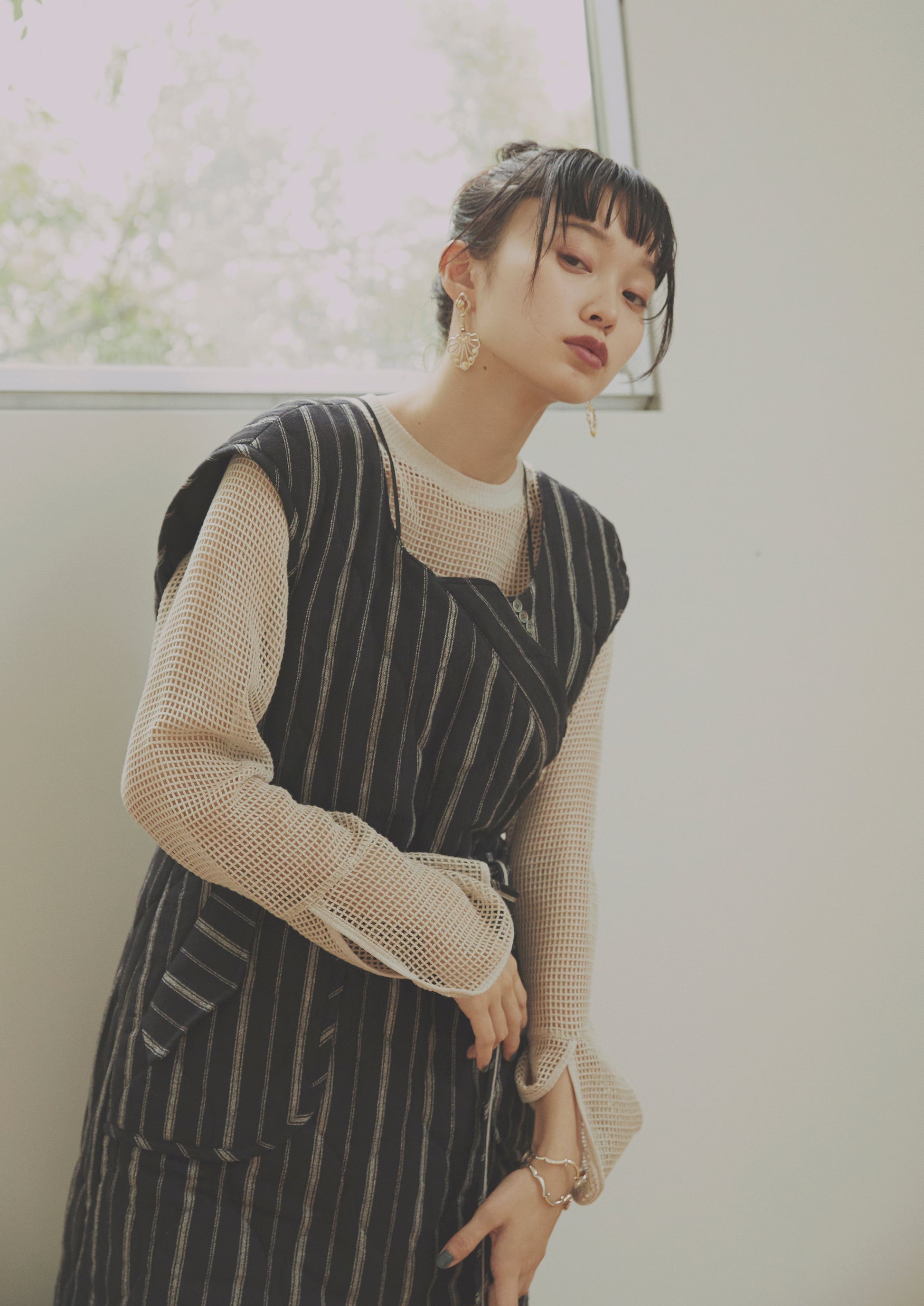 寬鬆的設計搭配肩帶、腰帶等精緻的配件,營造出均衡的外觀。