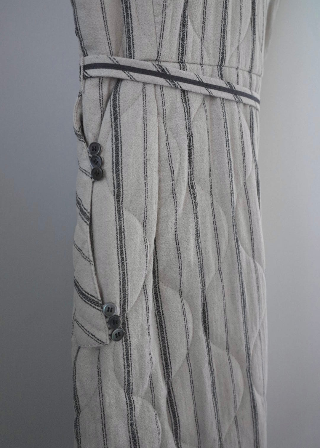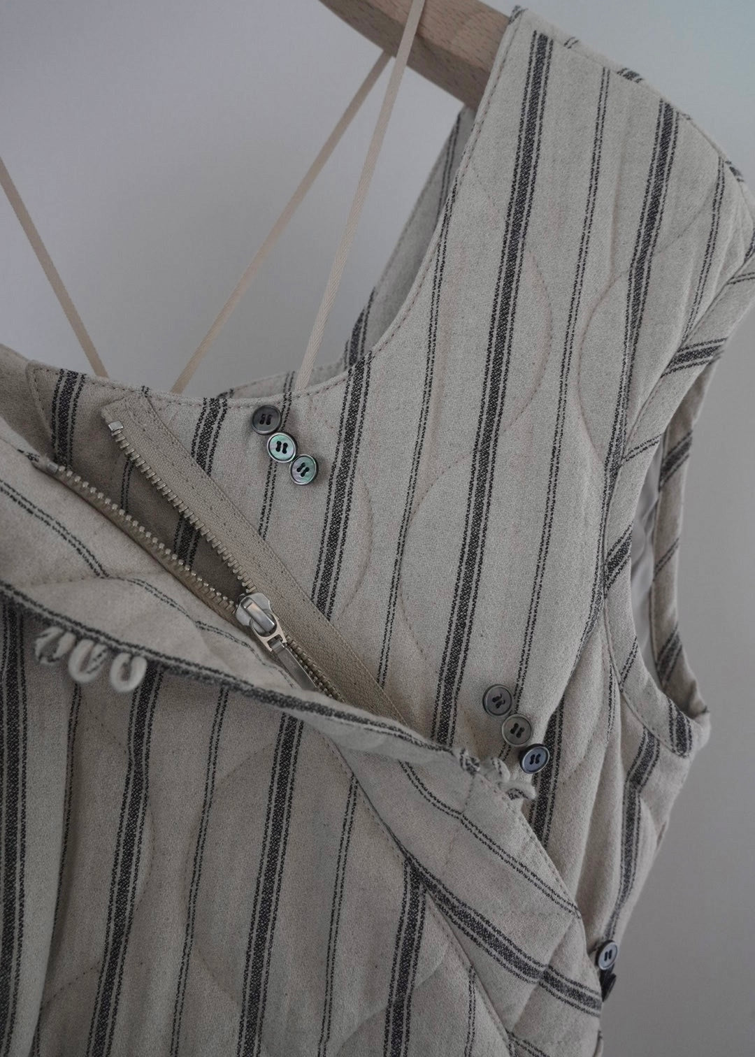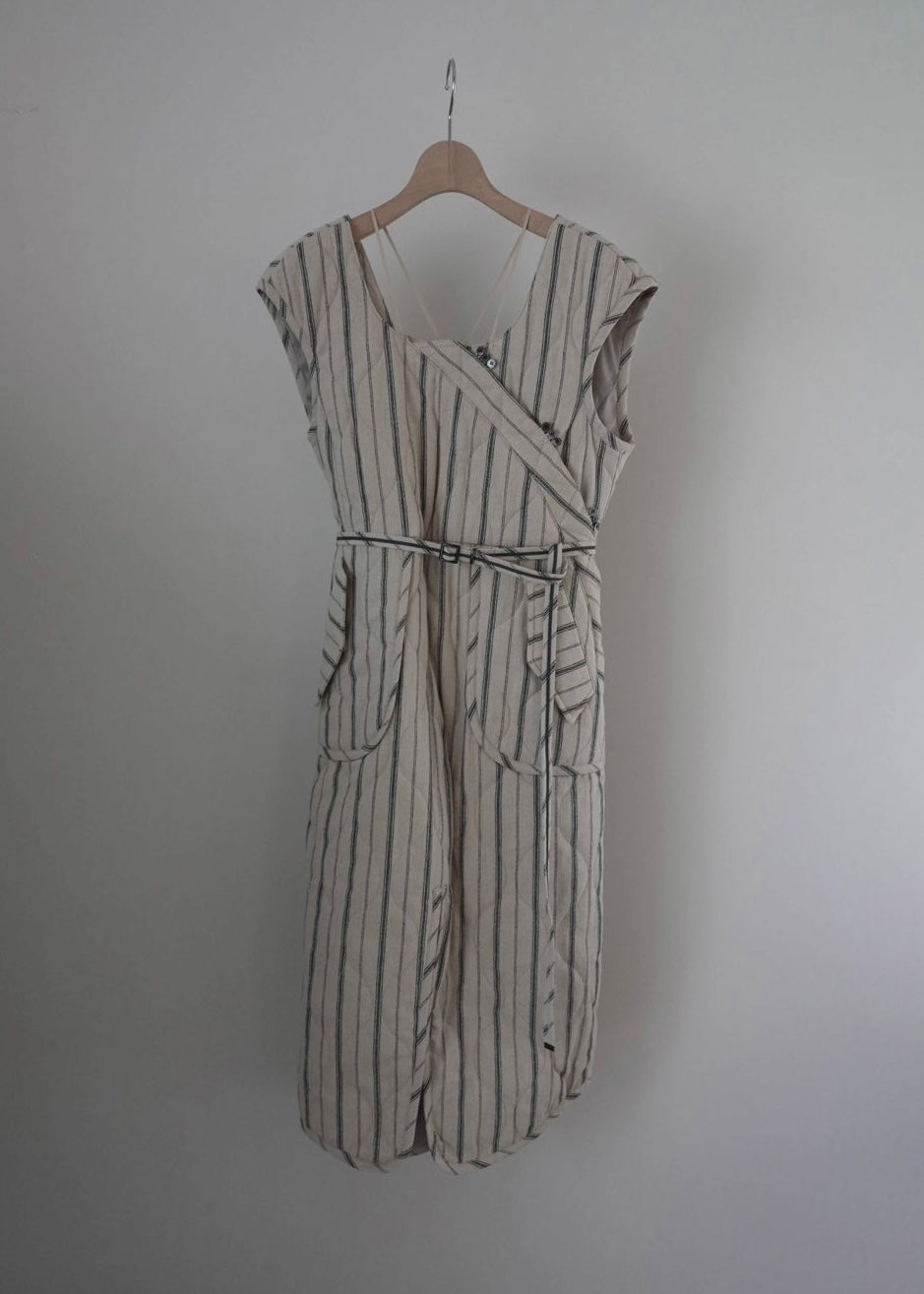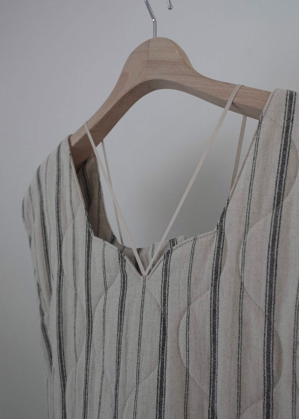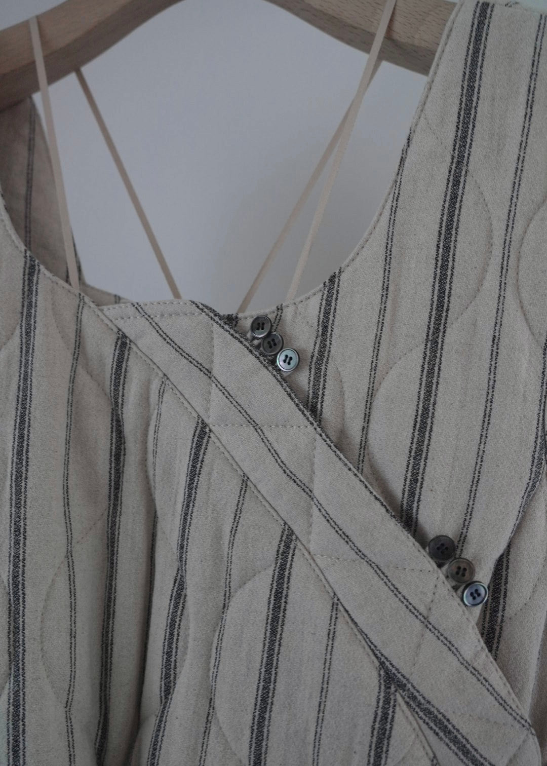 這款套頭裙採用條紋棉麻布料製成,經過絎縫處理,外觀柔軟。