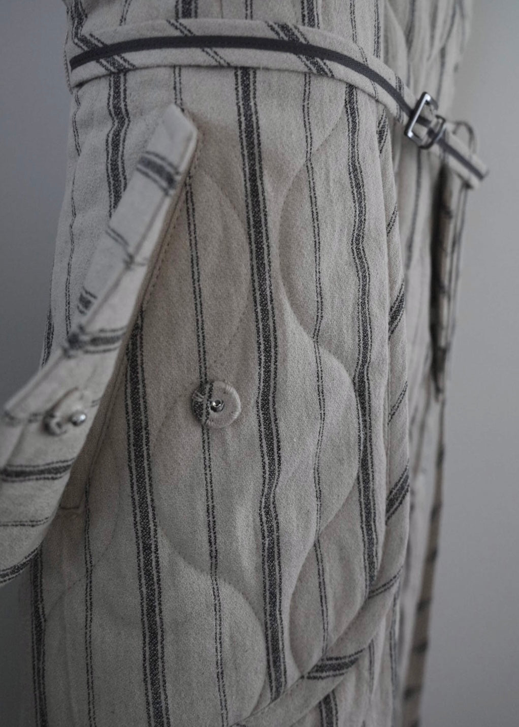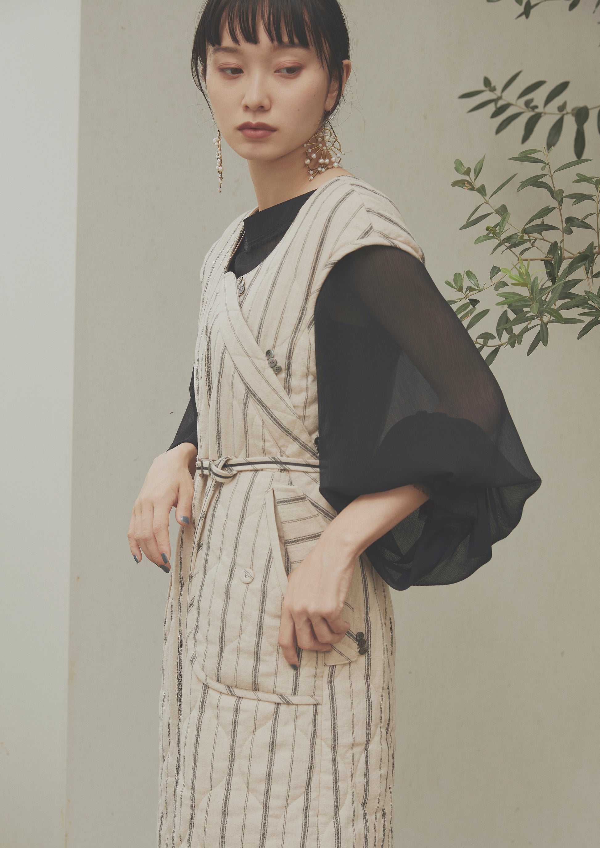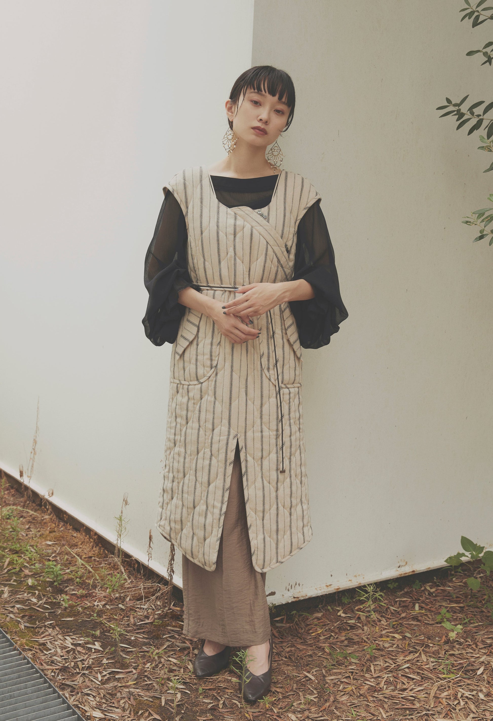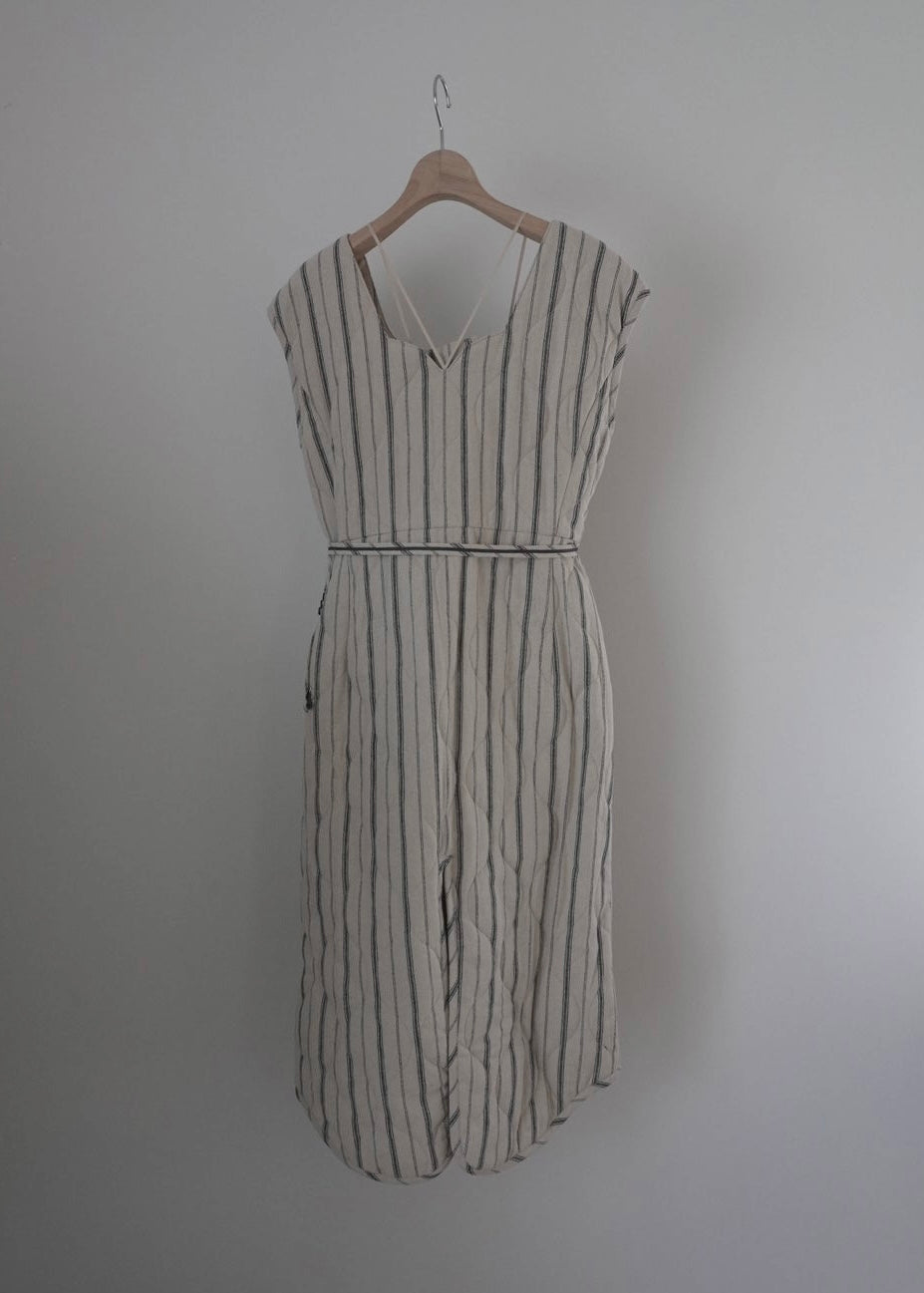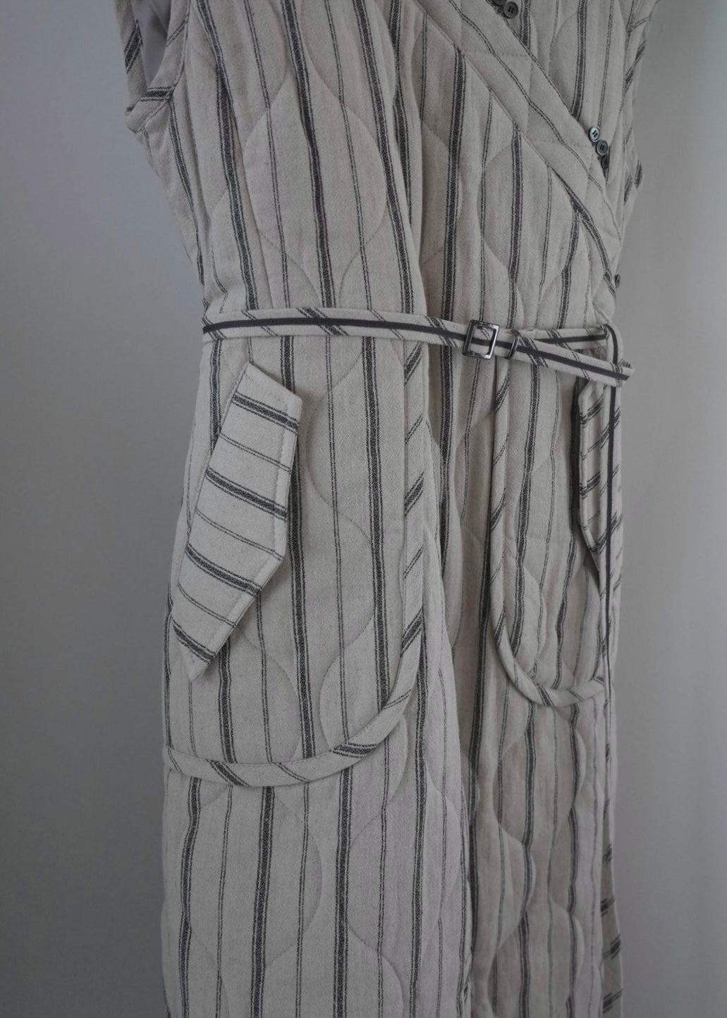 這款套頭裙採用條紋棉麻布料製成,經過絎縫處理,外觀柔軟。